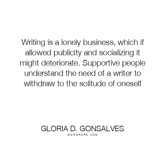 Writing is a lonely business, which if allowed publicity and socializing it might deteriorate. Supportive people understand the need of a writer to withdraw to the solitude of oneself