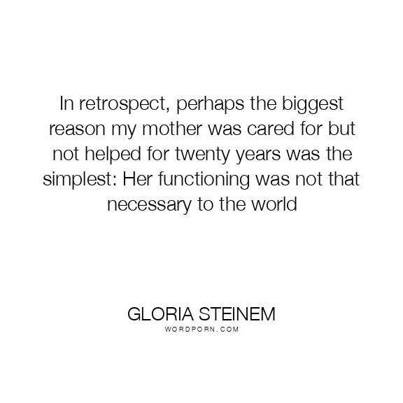 In retrospect, perhaps the biggest reason my mother was cared for but not helped for twenty years was the simplest: Her functioning was not that necessary to the world
