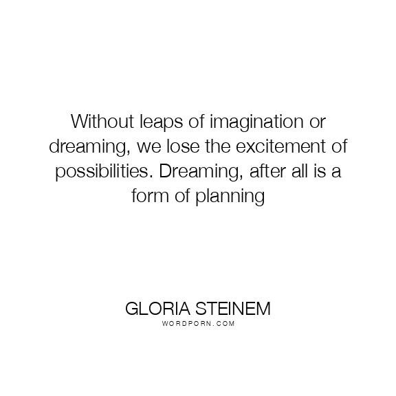Without leaps of imagination or dreaming, we lose the excitement of possibilities. Dreaming, after all is a form of planning
