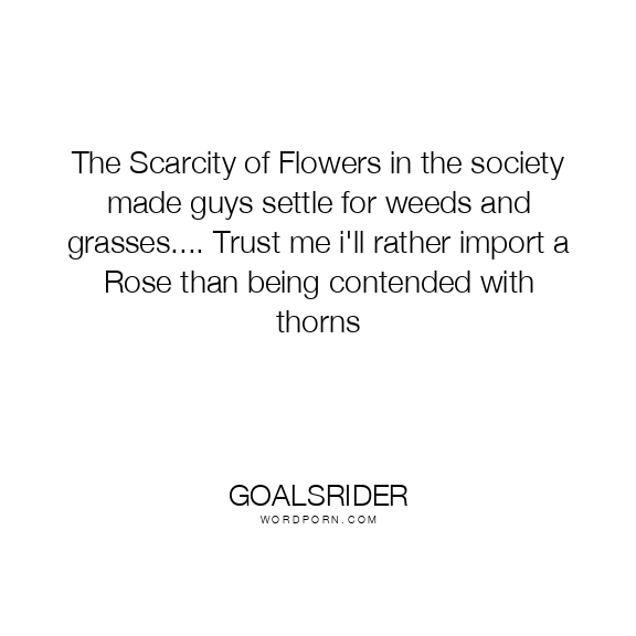 The Scarcity of Flowers in the society made guys settle for weeds and grasses.... Trust me i'll rather import a Rose than being contended with thorns
