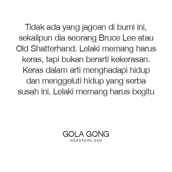 Tidak ada yang jagoan di bumi ini, sekalipun dia seorang Bruce Lee atau Old Shatterhand. Lelaki memang harus keras, tapi bukan berarti kekerasan. Keras dalam arti menghadapi hidup dan menggeluti hidup yang serba susah ini. Lelaki memang harus begitu