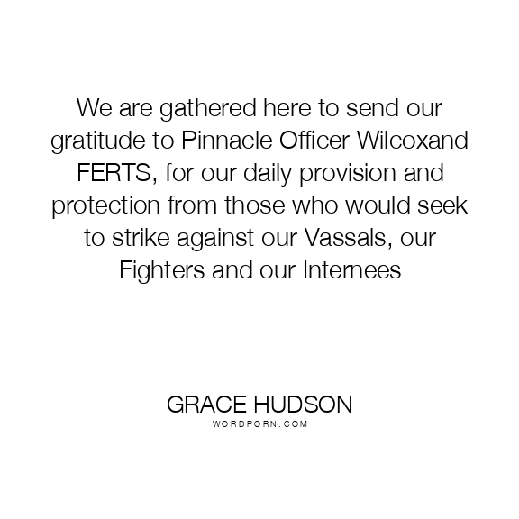We are gathered here to send our gratitude to Pinnacle Officer Wilcoxand FERTS, for our daily provision and protection from those who would seek to strike against our Vassals, our Fighters and our Internees