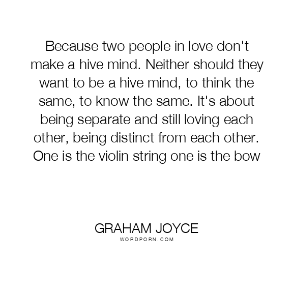 Because two people in love don't make a hive mind. Neither should they want to be a hive mind, to think the same, to know the same. It's about being separate and still loving each other, being distinct from each other. One is the violin string one is the bow