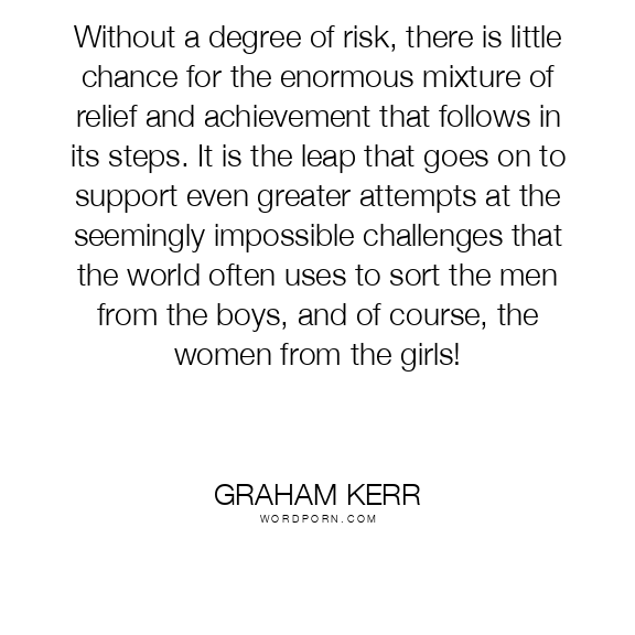 Without a degree of risk, there is little chance for the enormous mixture of relief and achievement that follows in its steps. It is the leap that goes on to support even greater attempts at the seemingly impossible challenges that the world often uses to sort the men from the boys, and of course, the women from the girls!