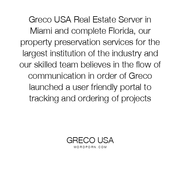 Greco USA Real Estate Server in Miami and complete Florida, our property preservation services for the largest institution of the industry and our skilled team believes in the flow of communication in order of Greco launched a user friendly portal to tracking and ordering of projects