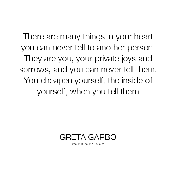 There are many things in your heart you can never tell to another person. They are you, your private joys and sorrows, and you can never tell them. You cheapen yourself, the inside of yourself, when you tell them