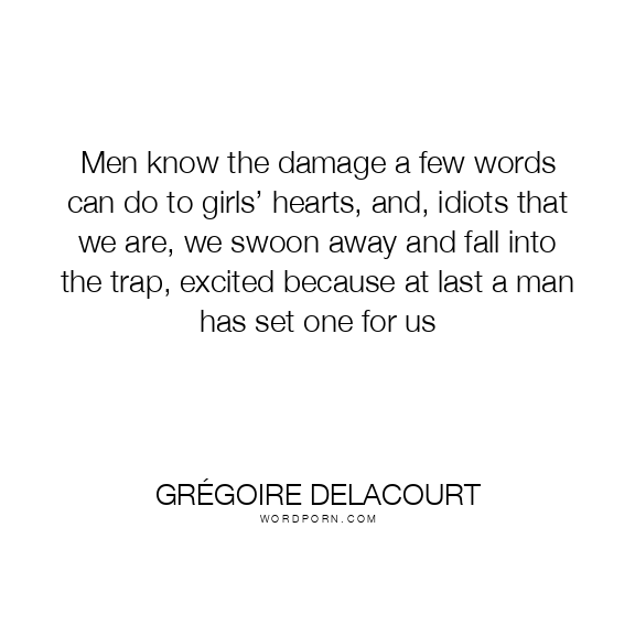 Men know the damage a few words can do to girls’ hearts, and, idiots that we are, we swoon away and fall into the trap, excited because at last a man has set one for us