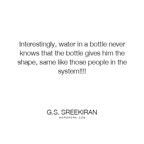 Copy Image Interestingly, water in a bottle never knows that the bottle gives him the shape, same like those people in the system!!!! Moms Typewriter A A SAVE THIS IMAGE
