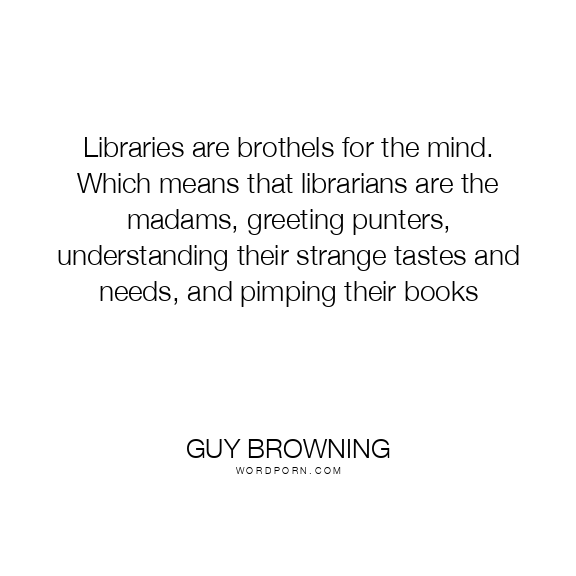 Libraries are brothels for the mind. Which means that librarians are the madams, greeting punters, understanding their strange tastes and needs, and pimping their books