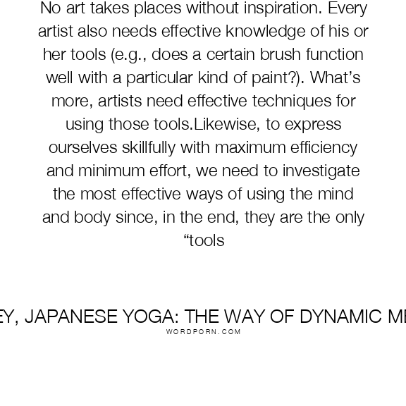 No art takes places without inspiration. Every artist also needs effective knowledge of his or her tools (e.g., does a certain brush function well with a particular kind of paint?). What’s more, artists need effective techniques for using those tools.Likewise, to express ourselves skillfully with maximum efficiency and minimum effort, we need to investigate the most effective ways of using the mind and body since, in the end, they are the only “tools