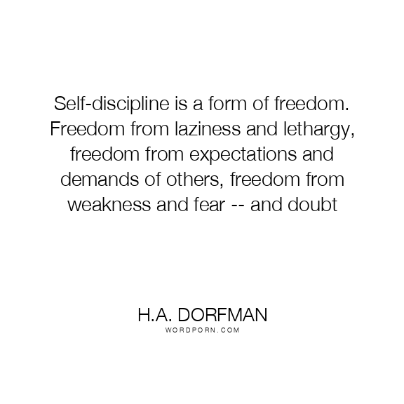 Self-discipline is a form of freedom. Freedom from laziness and lethargy, freedom from expectations and demands of others, freedom from weakness and fear -- and doubt
