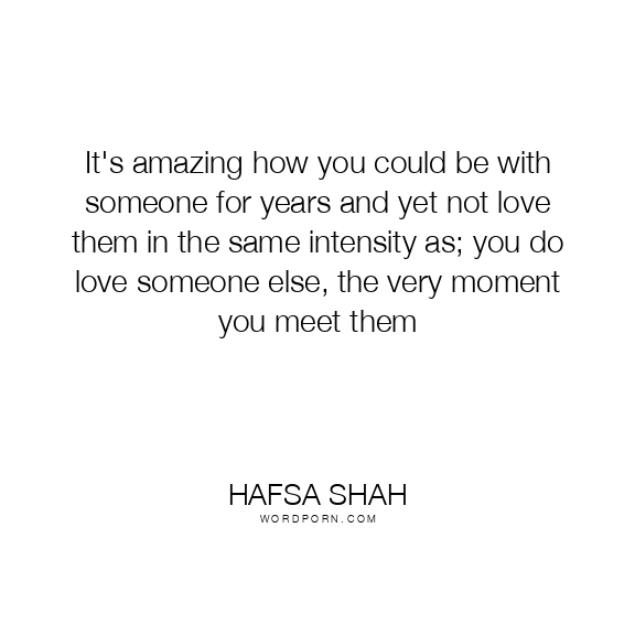 It's amazing how you could be with someone for years and yet not love them in the same intensity as; you do love someone else, the very moment you meet them