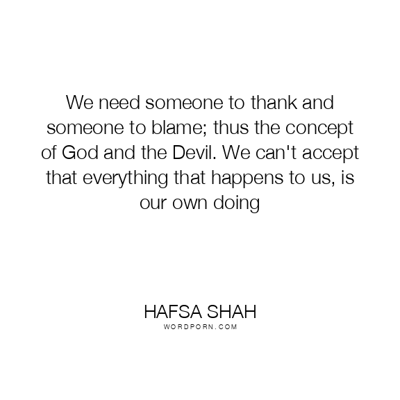 We need someone to thank and someone to blame; thus the concept of God and the Devil. We can't accept that everything that happens to us, is our own doing