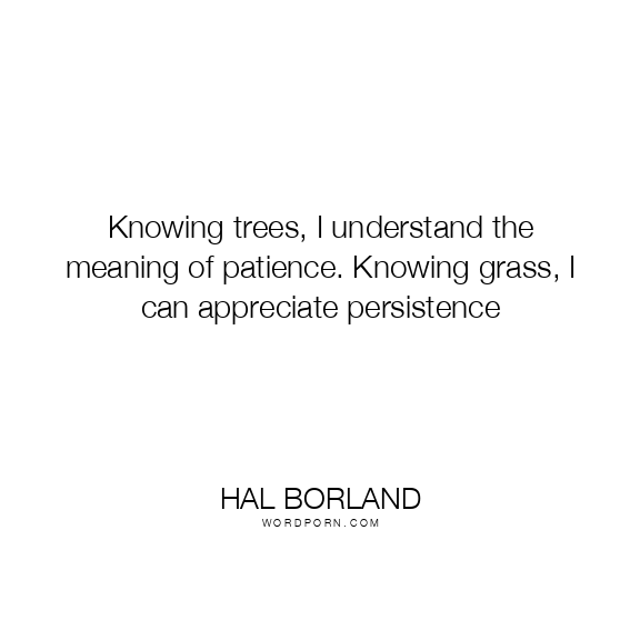 Knowing trees, I understand the meaning of patience. Knowing grass, I can appreciate persistence