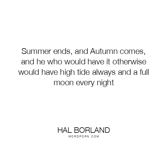 Summer ends, and Autumn comes, and he who would have it otherwise would have high tide always and a full moon every night