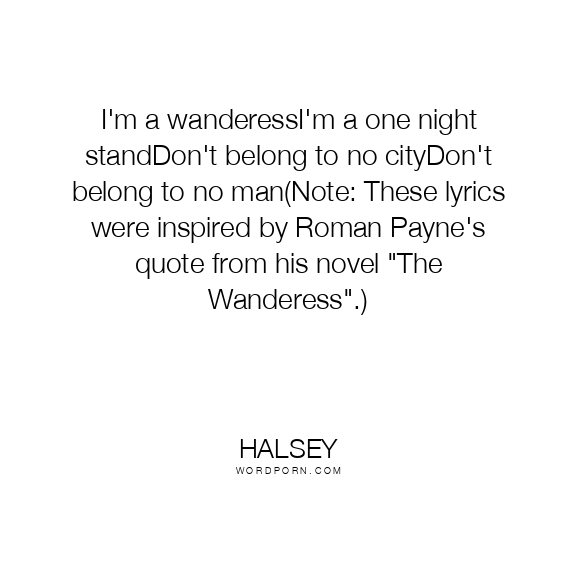 I'm a wanderessI'm a one night standDon't belong to no cityDon't belong to no man(Note: These lyrics were inspired by Roman Payne's quote from his novel "The Wanderess".)
