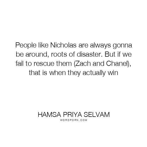 Copy Image People like Nicholas are always gonna be around, roots of disaster. But if we fail to rescue them (Zach and Chanel), that is when they actually win Moms Typewriter A A SAVE THIS IMAGE