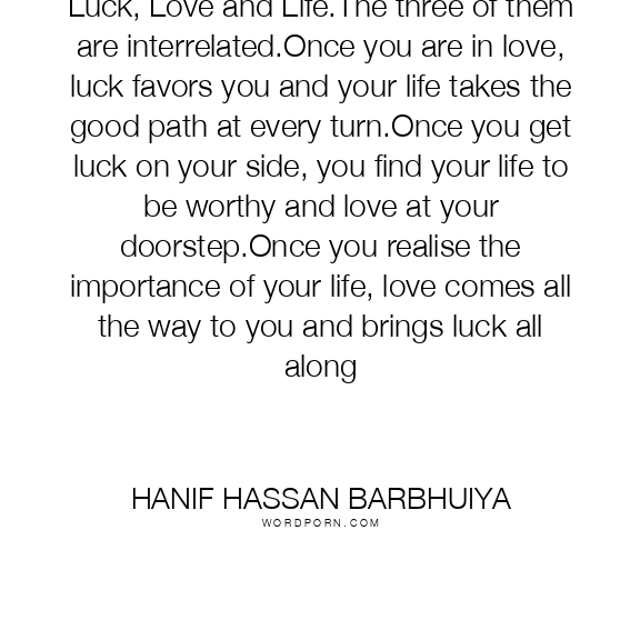 Luck, Love and Life.The three of them are interrelated.Once you are in love, luck favors you and your life takes the good path at every turn.Once you get luck on your side, you find your life to be worthy and love at your doorstep.Once you realise the importance of your life, love comes all the way to you and brings luck all along