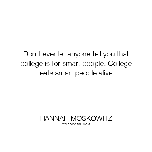 Don't ever let anyone tell you that college is for smart people. College eats smart people alive