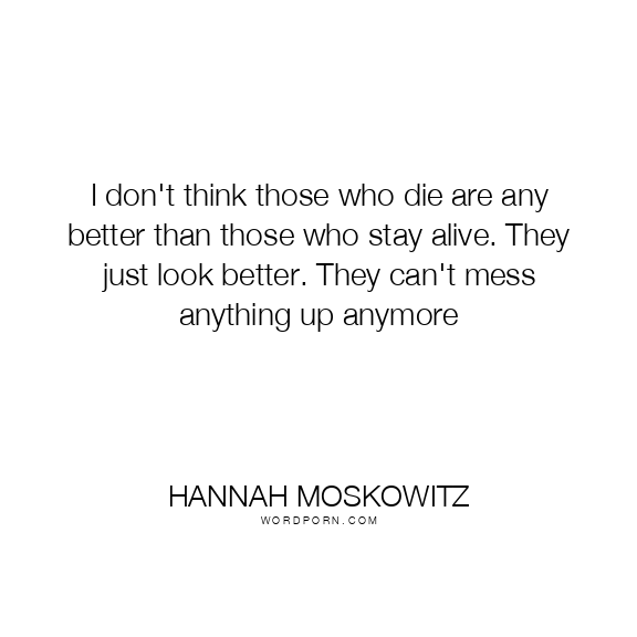 I don't think those who die are any better than those who stay alive. They just look better. They can't mess anything up anymore