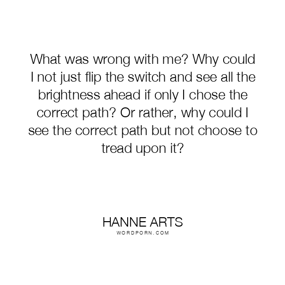 What was wrong with me? Why could I not just flip the switch and see all the brightness ahead if only I chose the correct path? Or rather, why could I see the correct path but not choose to tread upon it?