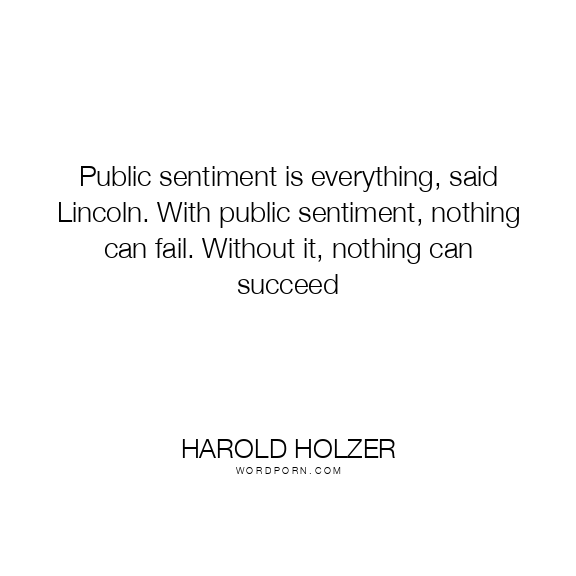 Public sentiment is everything, said Lincoln. With public sentiment, nothing can fail. Without it, nothing can succeed