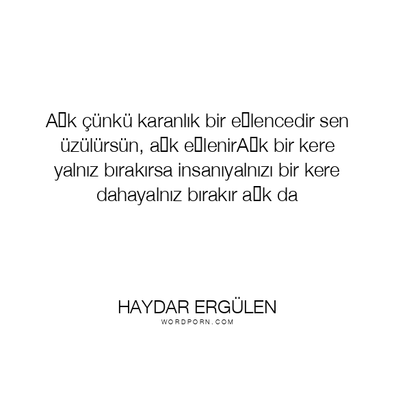 Aşk çünkü karanlık bir eğlencedir sen üzülürsün, aşk eğlenirAşk bir kere yalnız bırakırsa insanıyalnızı bir kere dahayalnız bırakır aşk da