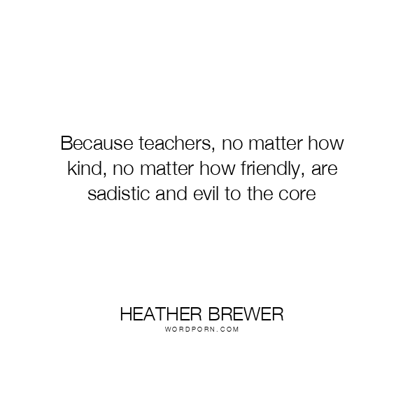 Heather Brewer quote. Because teachers, no matter how kind, no matter how friendly, are sadistic and evil to the core