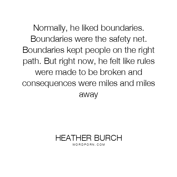 Normally, he liked boundaries. Boundaries were the safety net. Boundaries kept people on the right path. But right now, he felt like rules were made to be broken and consequences were miles and miles away