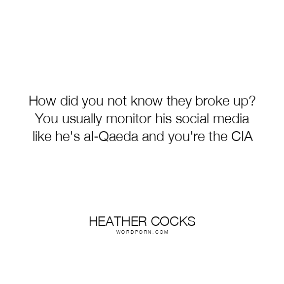 Copy Image How did you not know they broke up? You usually monitor his social media like he's al-Qaeda and you're the CIA Moms Typewriter A A SAVE THIS IMAGE