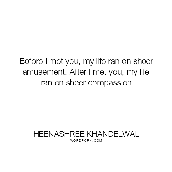 Before I met you, my life ran on sheer amusement. After I met you, my life ran on sheer compassion