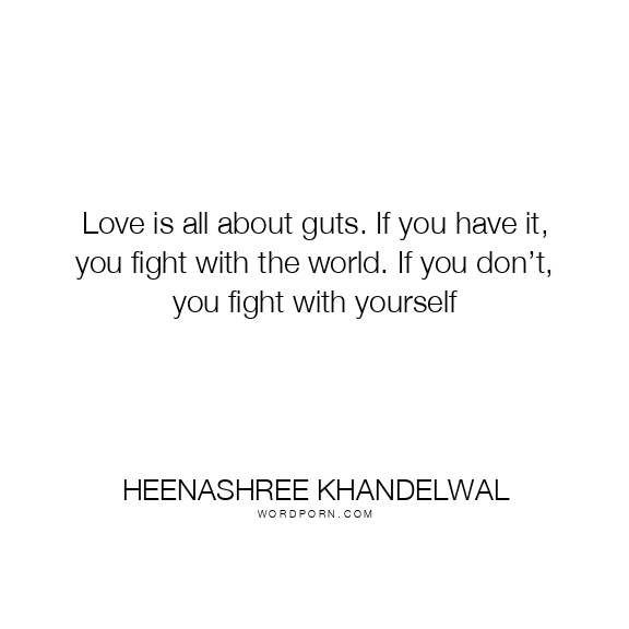 Love is all about guts. If you have it, you fight with the world. If you don’t, you fight with yourself