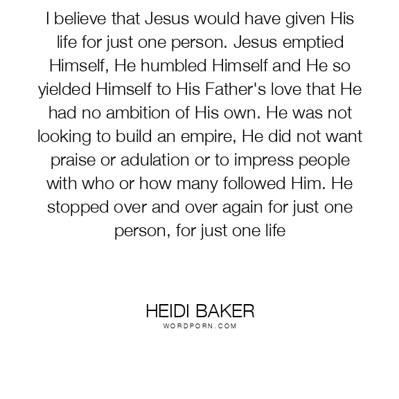 I believe that Jesus would have given His life for just one person. Jesus emptied Himself, He humbled Himself and He so yielded Himself to His Father's love that He had no ambition of His own. He was not looking to build an empire, He did not want praise or adulation or to impress people with who or how many followed Him. He stopped over and over again for just one person, for just one life