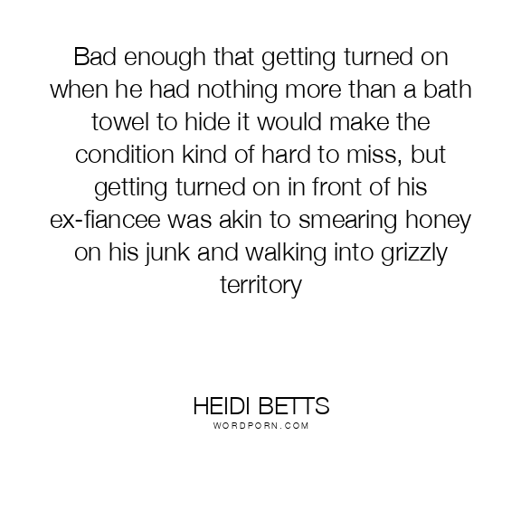 Bad enough that getting turned on when he had nothing more than a bath towel to hide it would make the condition kind of hard to miss, but getting turned on in front of his ex-fiancee was akin to smearing honey on his junk and walking into grizzly territory
