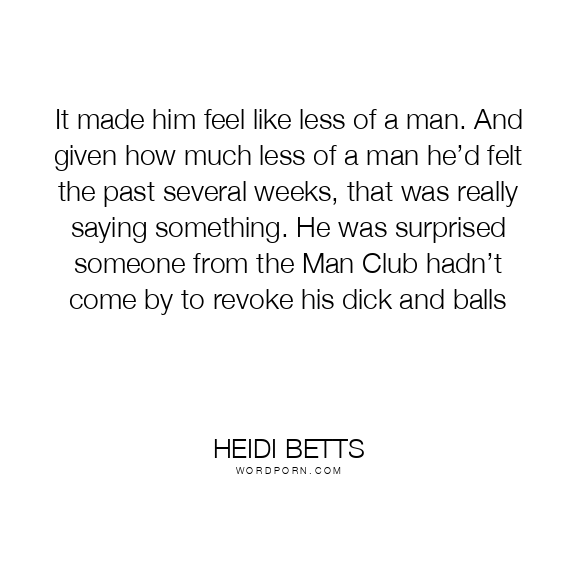 It made him feel like less of a man. And given how much less of a man he’d felt the past several weeks, that was really saying something. He was surprised someone from the Man Club hadn’t come by to revoke his dick and balls
