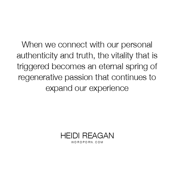 When we connect with our personal authenticity and truth, the vitality that is triggered becomes an eternal spring of regenerative passion that continues to expand our experience
