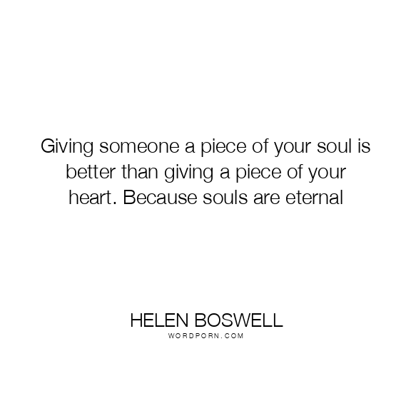 Giving someone a piece of your soul is better than giving a piece of your heart. Because souls are eternal