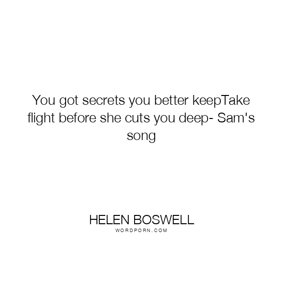 You got secrets you better keepTake flight before she cuts you deep- Sam's song