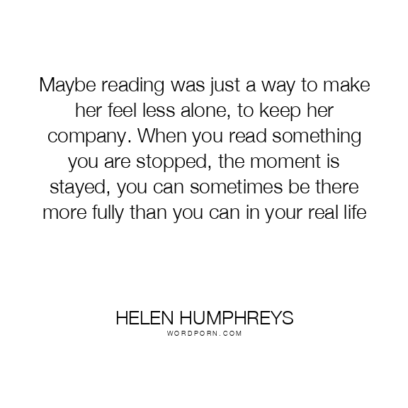 Maybe reading was just a way to make her feel less alone, to keep her company. When you read something you are stopped, the moment is stayed, you can sometimes be there more fully than you can in your real life