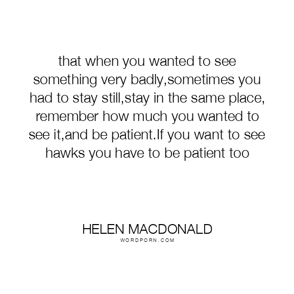 that when you wanted to see something very badly,sometimes you had to stay still,stay in the same place, remember how much you wanted to see it,and be patient.If you want to see hawks you have to be patient too