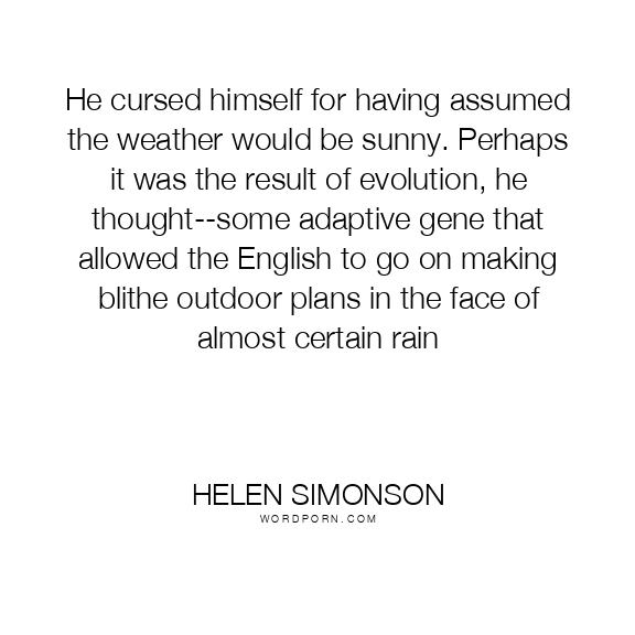 He cursed himself for having assumed the weather would be sunny. Perhaps it was the result of evolution, he thought--some adaptive gene that allowed the English to go on making blithe outdoor plans in the face of almost certain rain
