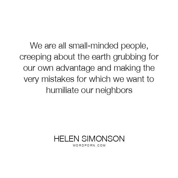 We are all small-minded people, creeping about the earth grubbing for our own advantage and making the very mistakes for which we want to humiliate our neighbors