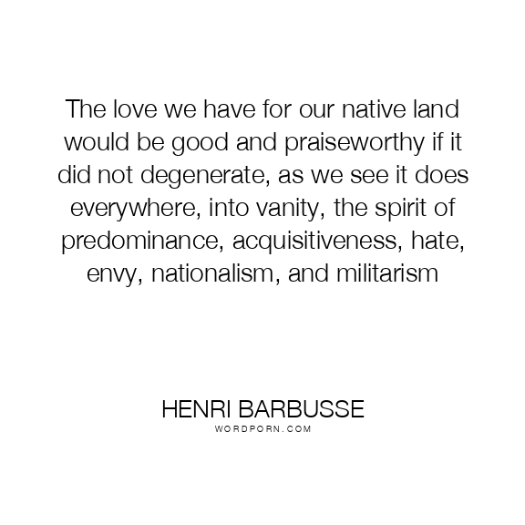 The love we have for our native land would be good and praiseworthy if it did not degenerate, as we see it does everywhere, into vanity, the spirit of predominance, acquisitiveness, hate, envy, nationalism, and militarism
