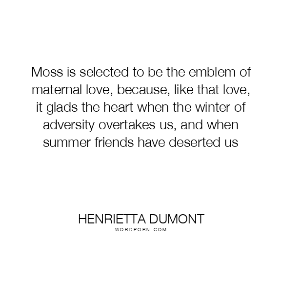 Moss is selected to be the emblem of maternal love, because, like that love, it glads the heart when the winter of adversity overtakes us, and when summer friends have deserted us