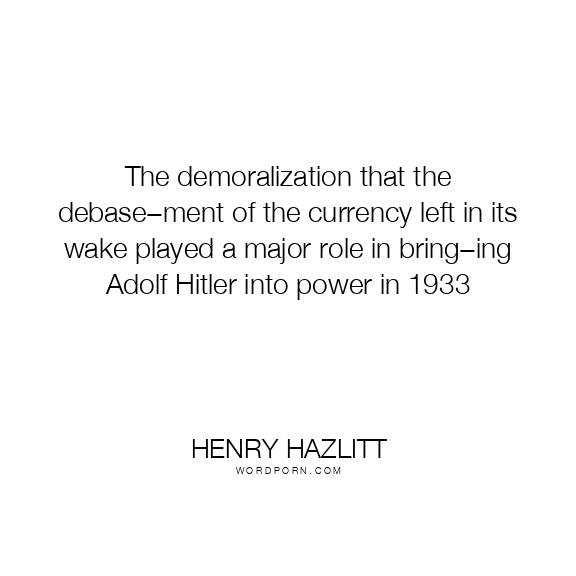 The demoralization that the debasement of the currency left in its wake played a major role in bringing Adolf Hitler into power in 1933