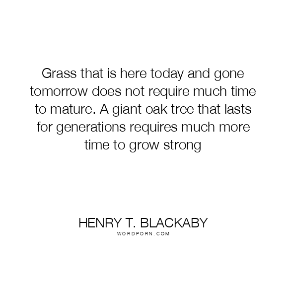 Grass that is here today and gone tomorrow does not require much time to mature. A giant oak tree that lasts for generations requires much more time to grow strong