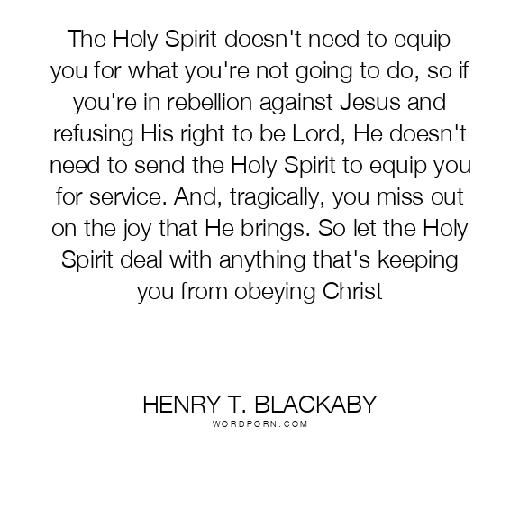 The Holy Spirit doesn't need to equip you for what you're not going to do, so if you're in rebellion against Jesus and refusing His right to be Lord, He doesn't need to send the Holy Spirit to equip you for service. And, tragically, you miss out on the joy that He brings. So let the Holy Spirit deal with anything that's keeping you from obeying Christ