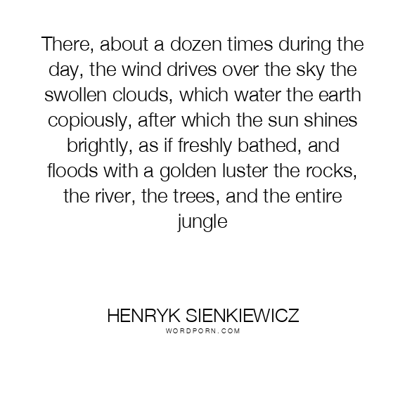 There, about a dozen times during the day, the wind drives over the sky the swollen clouds, which water the earth copiously, after which the sun shines brightly, as if freshly bathed, and floods with a golden luster the rocks, the river, the trees, and the entire jungle