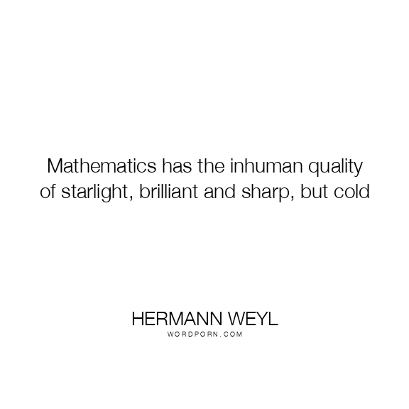 Mathematics has the inhuman quality of starlight, brilliant and sharp, but cold