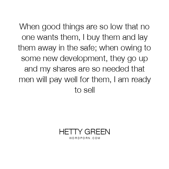 When good things are so low that no one wants them, I buy them and lay them away in the safe; when owing to some new development, they go up and my shares are so needed that men will pay well for them, I am ready to sell